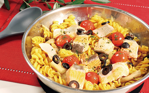 秋の食材をふんだんに使ったパスタで作るパエリアは、見た目も豪華でフライパン一つで出来上がります。