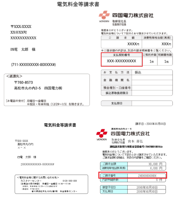 「電気料金等請求書、電気料金等のご案内(封書)」にてご確認ください。